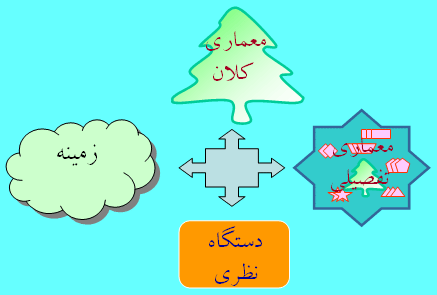 به خود ميگيرند. اين سير ادامه مى يابد تا اينكه در مرحله بعد، به معمارى كلان، طراحى تفصيلى كلان، چارچوب نظرى نهايى و الى آخر دست يابيم. يعنى اينكه در يك تكامل تدريجى